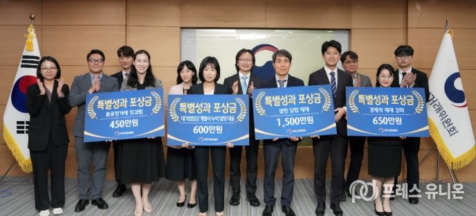 프레스유니온 강찬희 기자 | 공정거래위원회는 특별한 성과를 창출한 직원을 포상함으로써 조직내 구성원들이 적극적으로 일하고 성과 중심의 문화가 확산될 수 있도록 2026년 4월 22일 제1회 특별성과 포상금 수여식을 개최했다.