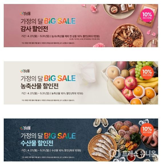 더불어 같은 기간 ‘경남 멍게 대축제’, ‘하동 쌀 기획전’, ‘통영 동행 특가 할인전’도 별도로 진행하고 있어 5월 가정의 달 기획전과 함께 소비자들에게 다양한 선택폭을 제공한다.