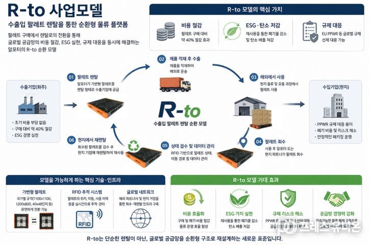 R-to 모델의 핵심은 ‘구매’에서 ‘렌탈’로의 전환이다. 기존에는 기업이 팔레트를 직접 구매해 단 한 번 사용하고 폐기했다면, R-to에서는 팔레트를 렌탈 형태로 공급받고, 사용 후에는 해외에서 회수된 팔레트를 현지 기업에 재공급하는 순환 구조를 형성한다. 이로써 팔레트는 일회성 비용이 아닌 반복적으로 활용되는 운영 자산으로 전환된다.