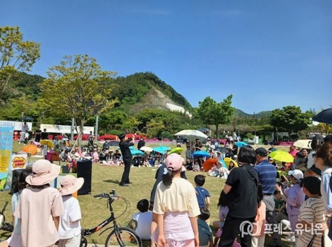프레스유니온 강찬희 기자 | 정읍시립중앙도서관이 지난 25일 기적의 놀이터에서 야외 도서관 행사인 ‘봄날의 책소풍’을 운영했다.