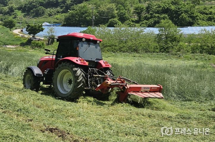 프레스유니온 강찬희 기자 | 무주군이 농번기를 맞아 '농작업 대행 서비스' 제공에 주력하고 있다. 무주군에 따르면 트랙터, 자주형 베일러 등 12종 48대를 활용해 하우스 정지 등 농업 현장의 필수 작업을 대행하고 있다.