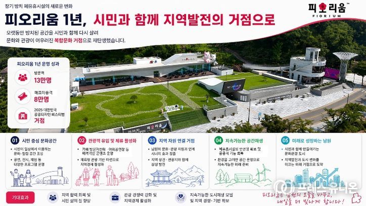 정량 지표와 함께 현장 변화도 확인된다. 방치 공간이 문화공간으로 바뀌면서 도시 이미지는 달라졌고, 시민은 생활권 가까이에서 문화를 이용할 수 있는 공간을 갖게 됐다. 관광객에게는 전통관광에 더해 새로운 관람 요소가 더해졌다. 폐자원시설 개선, 시민 안전사고 예방, 문화향유 확대, 지역 홍보효과 등 피오리움이 바꿔놓은 지역의 변화다.