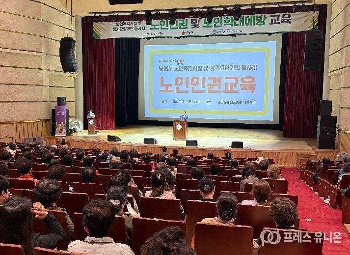 프레스유니온 강찬희 기자 | 남원시는 4월 24일 춘향문화예술회관 대공연장에서 지역 내 노인복지시설 및 장기요양기관 종사자 500명을 대상으로 2026년 노인학대 예방 및 종사자 인권 집합교육을 실시했다.