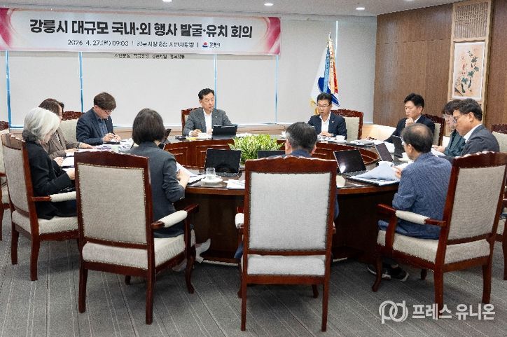 프레스유니온 강찬희 기자 | 강릉시는 27일 오전 9시 시청 8층 시민사랑방에서 김상영 강릉시장 권한대행 주재로 대규모 국내외 행사 발굴·유치 회의를 개최했다.