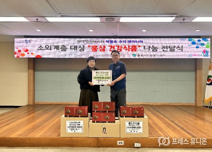 프레스유니온 김성길 기자 | 충주시자원봉사센터(센터장 심영자)는 27일 충주시청 10층 중회의실에서 현대엘리베이터 박철수 수석 엔지니어(57세)가 지난해에 이어 두 번째 지역사회 나눔 실천을 위해 홍삼 건강식품 50박스(375만원 상당)를 기탁했다고 밝혔다.