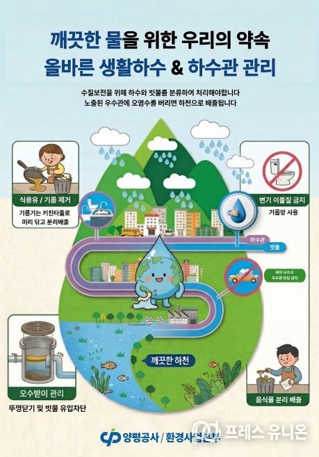 프레스유니온 김성길 기자 | 양평공사은 군민의 삶이 행복한 자연 친화적인 양평을 구현하기 위해 ‘2026년 올바른 생활하수 배출 및 빗물받이 관리 홍보 활동’을 본격적으로 추진한다고 밝혔다.