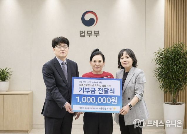 프레스유니온 김성길 기자 | 법무부 평택보호관찰소는 27일 ‘다중위기 보호관찰 청소년을 지원하기 위한 기부금 전달식’을 개최했다고 밝혔다.