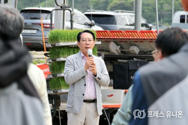 송인헌 군수는 "첫 모내기를 시작으로 관내 모든 작물이 재해 없이 풍성한 결실을 보시기 바란다"라며 "농가와 협력해 지속 가능한 농업 실현과 지역 경제 발전을 위해 최선을 다하겠다"고 밝혔다.