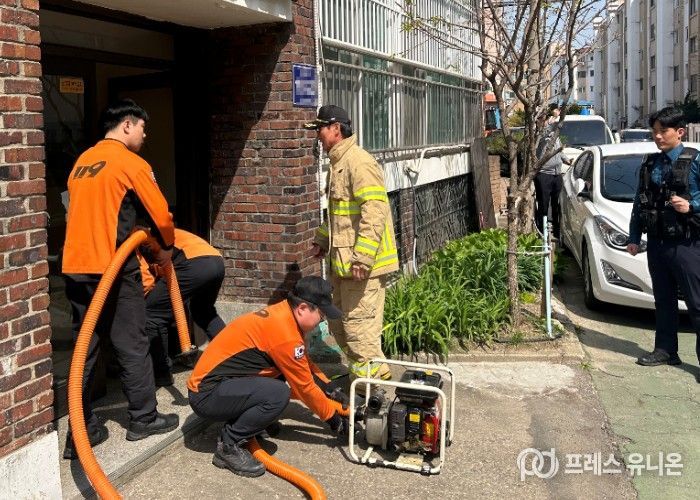 이번 훈련은 시간당 120㎜의 집중호우로 인한 반지하 주택 침수 상황을 가정하고, 수방자재 전진배치・주민대피 명령・경보시설 운영 등 절차를 거쳐 주민을 신속하고 안전하게 대피소로 이동시키는 대응 체계를 점검하는 데 중점을 뒀다.