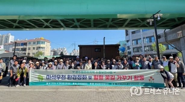 프레스유니온 김성길 기자 | 남양주시는 화도읍 이장협의회가 지난 24일 마석우천과 마석광장 일원에서 힐링 꽃길 조성을 위한 환경정비와 꽃묘 식재 활동을 실시했다고 27일 밝혔다.