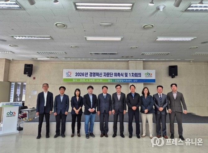 프레스유니온 강찬희 기자 | 안양산업진흥원은 지난 24일 창업지원센터 9층 강당에서 ‘2026년 경영혁신자문단 신규 위원 위촉식 및 1차 회의’를 개최했다.