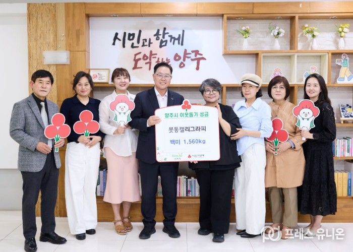 프레스유니온 김성길 기자 | 양주시는 지난 24일 시장실에서 붓통캘리그라피로부터 이웃돕기 성품으로 백미 1,560kg을 기탁받았다고 밝혔다.
