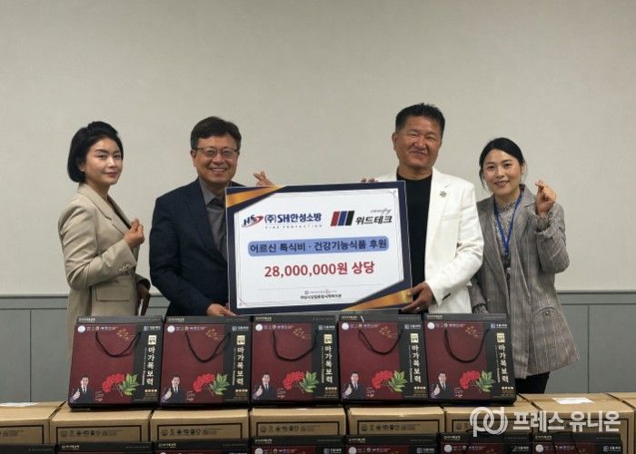 프레스유니온 김성길 기자 | ㈜SH한성소방과 ㈜위드테크는 4월 23일, 하남시감일종합사회복지관(사회복지법인 휴먼복지회 운영)에 지역 취약계층 지원을 위한 후원금품 2,800만 원 상당을 기탁했다.