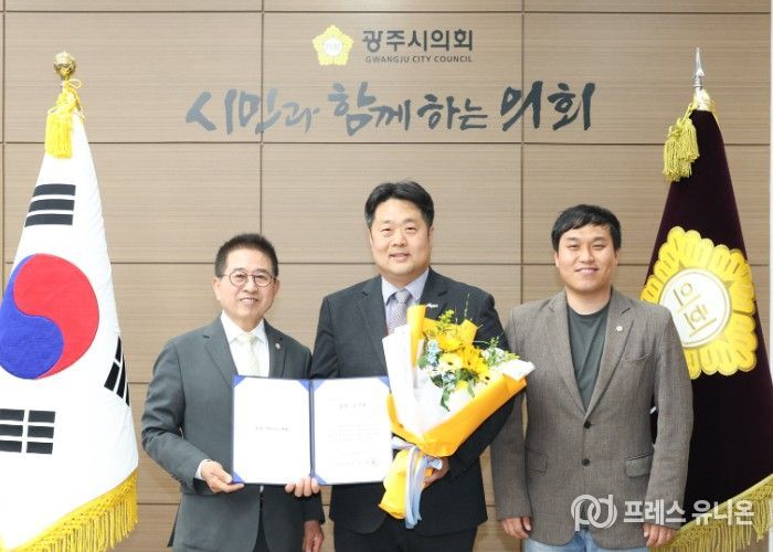 프레스유니온 강찬희 기자 | 광주시의회는 지난 23일, 광주시의회 4월 칭찬공무원으로 문화관광과 관광팀의 황태선 팀장을 선정하여 의장실에서 증서를 수여했다.