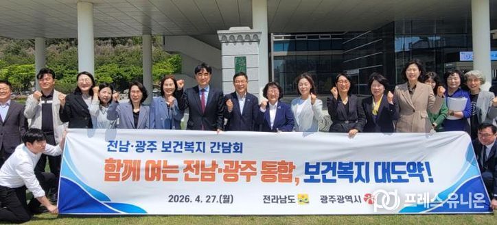 전남도와 광주시는 27일 도청 서재필실에서 두 시·도 복지국장과 과장단 등 30여 명이 참석한 가운데 ‘전남광주통합특별시 성공적 출범을 위한 보건복지부서 간담회’를 열었다.