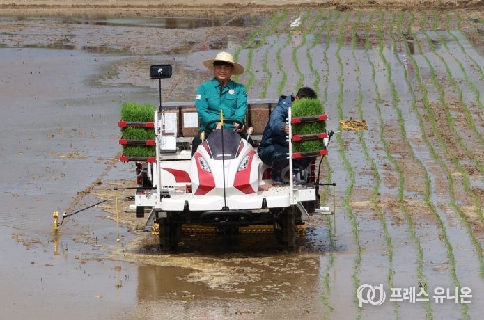 프레스유니온 강찬희 기자 | 동해시는 27일 망상동 511번지 일원에서 올해 첫 모내기를 실시하며 본격적인 영농철 시작을 알렸다고 밝혔다.
