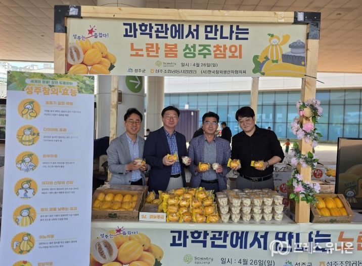 프레스유니온 강찬희 기자 | 성주군과 성주조합공동사업법인과 (사)한국참외생산자협의회는 지난 4월 26일, 대구 달성군에 소재한 국립대구과학관에서 과학관에서 만나는 노란 봄 성주참외를 주제로 성주참외 홍보 및 무료 시식 행사를 성황리에 마쳤다.