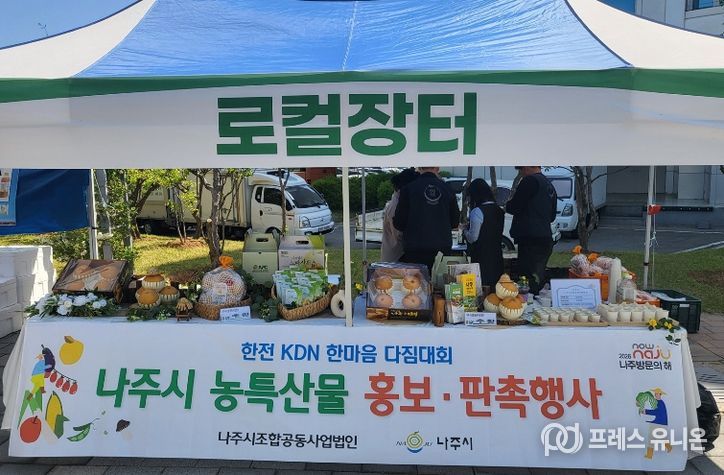 나주시는 지난 4월 25일 한전KDN 본사에서 열린 ‘2026 한전KDN 노사합동 한마음 다짐대회’와 연계해 농특산물 홍보 판촉 행사를 추진했다고 27일 밝혔다.