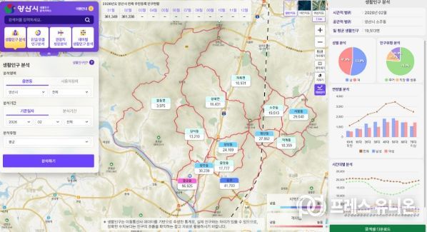 프레스유니온 강찬희 기자 | 양산시가 시민 누구나 지역 인구 흐름을 확인할 수 있는 ‘양산시 생활인구 분석 서비스’를 구축해 공개했다.