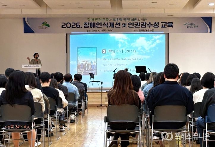 프레스유니온 강찬희 기자 | 서울 은평구는 지난 16일 장애에 대한 올바른 인식 확산과 인권 중심 행정 구현을 위해 구청 직원을 대상으로 ‘2026년 장애인식개선 및 인권감수성 교육’을 실시했다고 밝혔다.