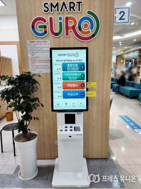 프레스유니온 강찬희 기자 | 구로구가 민원실 이용 편의를 높이기 위해 무장애 순번대기 무인안내기 설치를 완료했다.