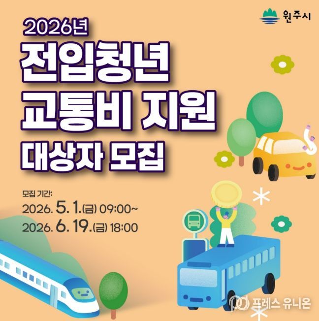 프레스유니온 강찬희 기자 | 원주시는 청년층의 전입과 안정적인 정착을 지원하기 위해 2023년 이후 원주시로 전입하고, 관외 직장으로 출퇴근하는 18∼39세 청년들을 대상으로 최대 120만 원의 교통비를 지원한다.
