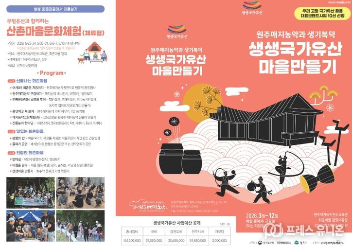 프레스유니온 강찬희 기자 | 원주시역사박물관은 원주매지농악보존회와 ‘원주매지농악과 생기복덕 생생 국가유산 마을 만들기’ 사업을 운영한다.