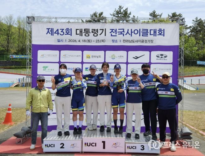 프레스유니온 강찬희 기자 | 상주시청 여자 사이클팀이 전남 나주시 일원에서 열린 ‘제43회 대통령기 전국사이클대회’에서 종합준우승과 함께 최우수지도자상(이형주 코치)을 차지했다.