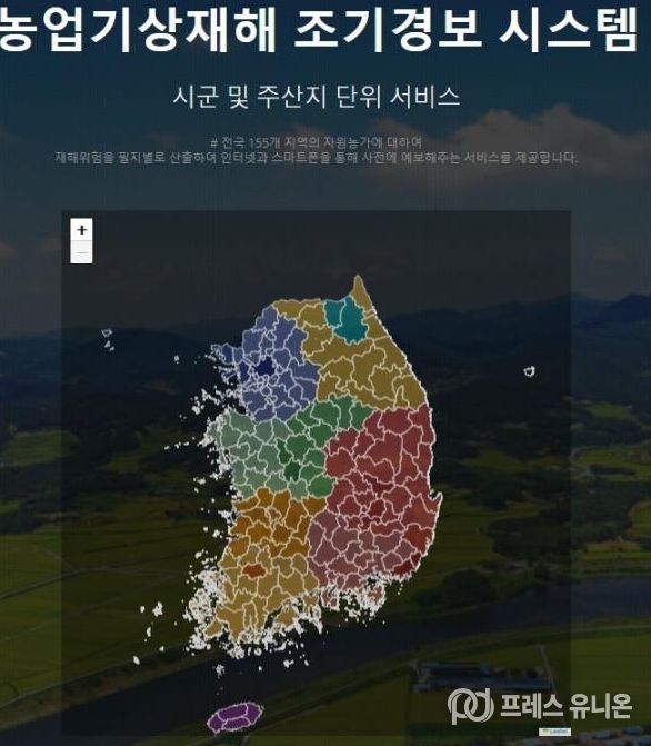 ‘농업기상재해 조기경보서비스’는 전국 155개 지역의 농가를 대상으로 필지별 재해 위험을 산출해 인터넷과 스마트폰을 통해 사전에 예보하는 시스템이다.