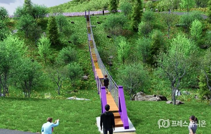 프레스유니온 강찬희 기자 | 동해시가 오는 6월 무릉별유천지 라벤더 축제 개장을 앞두고, 기존 석회석 채광산 지형과 라벤더 정원을 유기적으로 연결하는 체험형 보행시설 ‘하늘바람 다리’를 조성한다고 밝혔다.