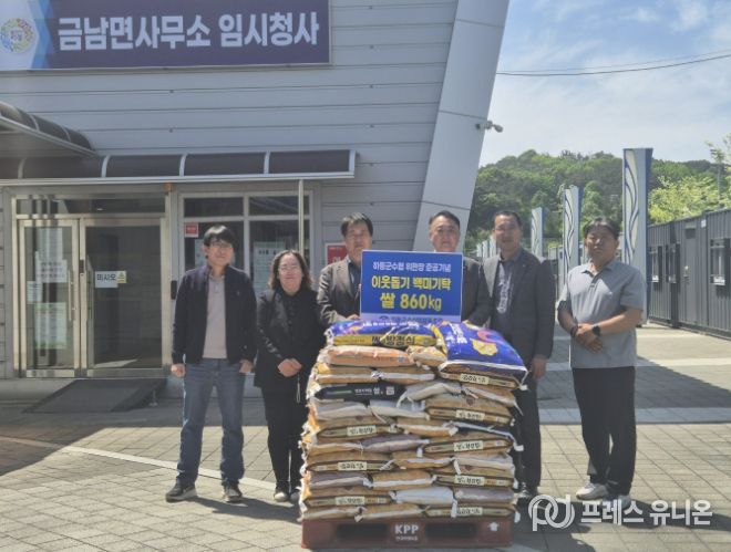 프레스유니온 강찬희 기자 | 하동군 금남면사무소는 지난 24일, 하동군수협이 수산물 위판장 준공을 축하하며 받은 쌀 860㎏을 지역 내 어려운 이웃을 위해 전달했다고 밝혔다.