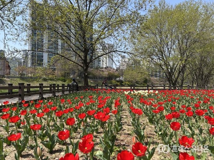 프레스유니온 김성길 기자 | 의정부시가 하천 구역 내 불법 경작지를 적극 정비하고, 그 자리에 튤립 정원을 조성해 시민들에게 활기찬 봄 풍경을 선사하고 있다.
