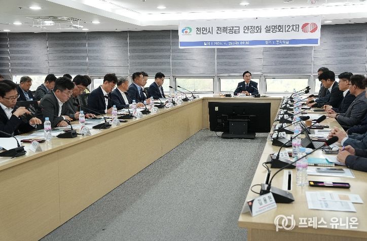 프레스유니온 강찬희 기자 | 천안시는 28일 시청 중회의실에서 한국전력공사 대전세종충남본부와 함께 ‘천안지역 전력공급 안정화를 위한 2차 설명회’를 열고 중장기 전력공급 로드맵 수립에 착수했다.