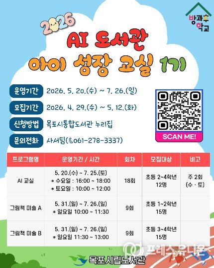 프레스유니온 강찬희 기자 | 목포시립도서관은 관내 초등학생을 대상으로 AI 융합 체험형 프로그램 ‘AI 도서관·아이 성장 교실’을 오는 5월 20일부터 운영한다.