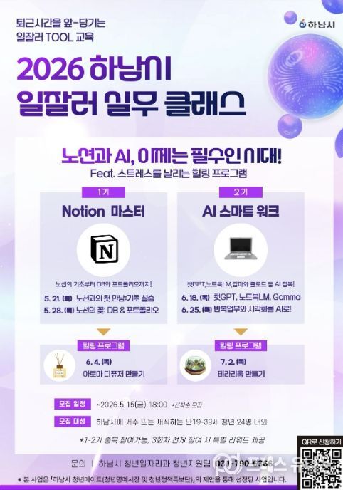 프레스유니온 김성길 기자 | 하남시는 관내 청년들이 현장에서 바로 활용할 수 있는 실무 역량을 키우고 또래 청년 간 교류 기회를 확대하기 위해 오는 5월부터 ‘2026년 하남시 일잘러 실무클래스’를 운영하고 1기와 2기 참여자를 모집한다고 밝혔다.