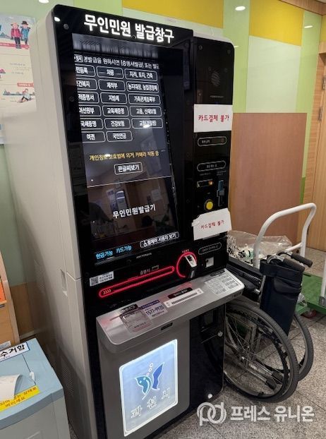 프레스유니온 김성길 기자 | 과천시는 시민에게 보다 신속하고 안정적인 민원 서비스를 제공하기 위해 노후 무인민원발급기 2대를 최신 장비로 교체‧설치했다고 밝혔다.