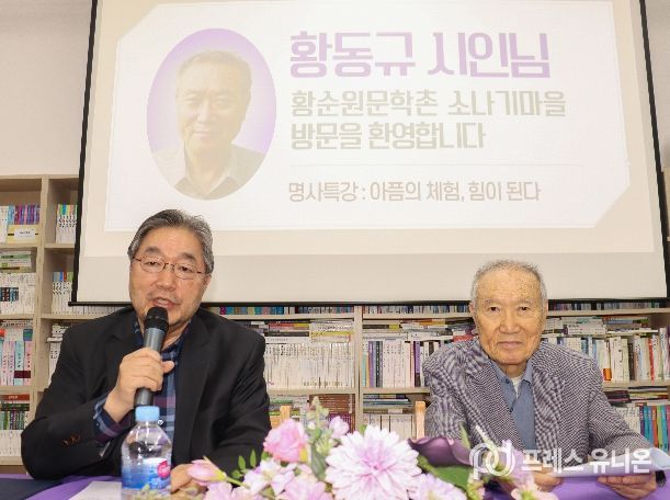 프레스유니온 김성길 기자 | 황순원 작가의 장남인 황동규(1938~) 시인이 지난 23일 서종면에 위치한 황순원문학촌 소나기마을(촌장 김종회)에서 열린 ‘2026 소나기마을 문학교실’에서 ‘아픔의 체험, 힘이 된다’를 주제로 특별 강연을 진행했다.