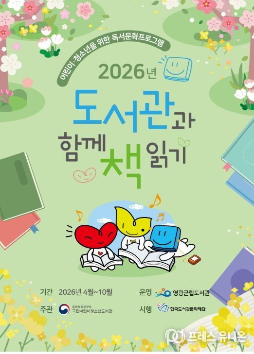프레스유니온 강찬희 기자 | 영광군은 국립어린이청소년도서관이 주관하는 '2026년 도서관과 함께 책 읽기' 공모사업에 2년 연속 선정됐다고 밝혔다.