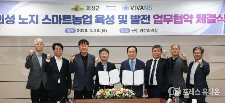 이번 협약은 지난 3월 의성군이 농림축산식품부 주관 ‘2026년 노지 스마트농업 육성지구’로 최종 선정됨에 따라, 민관 협력을 통해 전국을 대표하는 노지 스마트농업 모델을 구축하기 위해 마련됐다.
