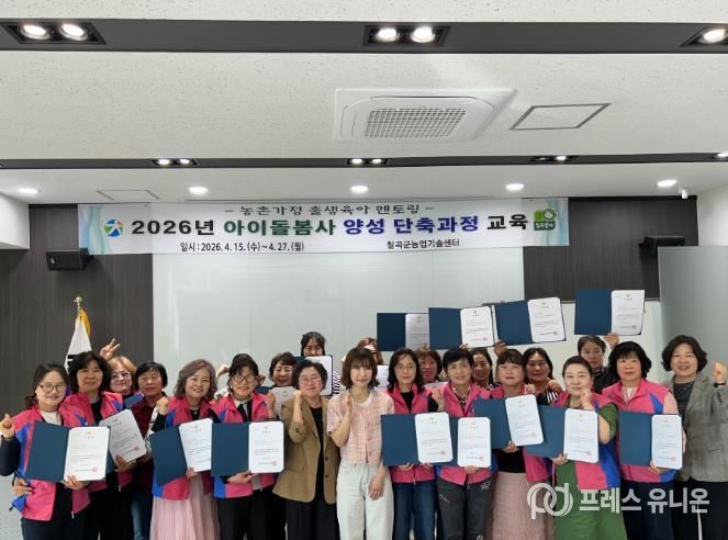 프레스유니온 강찬희 기자 | 칠곡군농업기술센터가 4월 15일부터 27일까지(9일간) 청년농업인지원센터에서 생활개선회원 20명을 대상으로 아이돌봄사 양성교육을 실시해 전원 수료했다고 밝혔다.