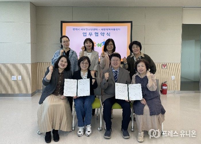 프레스유니온 김성길 기자 | 평택시 서부청소년센터는 지난 24일, 서부권역 지역아동센터 8개소와 청소년 활동 활성화 및 지역사회 협력 강화를 위한 업무협약을 체결했다고 밝혔다.