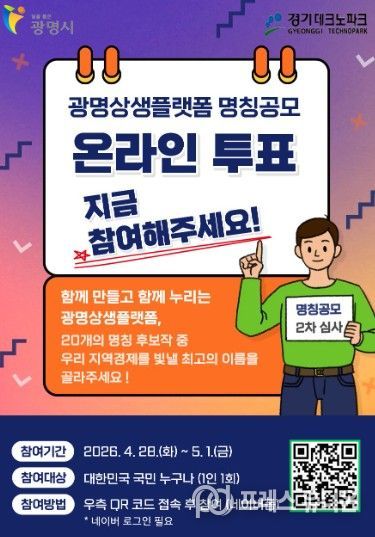 광명시청, 광명상생플랫폼, 경기테크노파크 누리집과 공식 사회관계망서비스(SNS) 채널에 게시된 링크를 통해 누구나 투표에 참여할 수 있다.