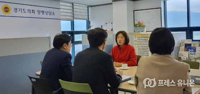 프레스유니온 강찬희 기자 | 경기도의회 기획재정위원회 부위원장 이혜원 의원 (국민의힘, 양평 2) 은 27일 양평상담소에서 경기도청 기획담당관 관계자와 함께 '경기도 행정기구 및 정원조례 개정' 관련 업무보고를 받고, 국가지원 지방도 건설 사업 및 지방채 발행 관련한 주요 현안을 점검했다.