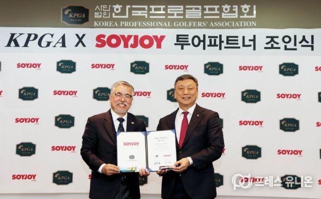 프레스유니온 강찬희 기자 | ㈜한국프로골프투어(KPGT)가 한국오츠카제약㈜의 건강 간식 브랜드 '소이조이(SOYJOY)'와 손을 잡고 선수들의 건강한 투어 생활을 지원한다.