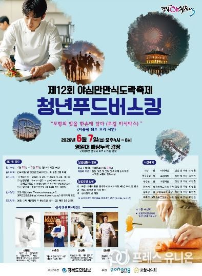 프레스유니온 강찬희 기자 | 포항시는 제12회 야심만만 식도락축제의 ‘전국 청년푸드버스킹 요리경연대회’ 참가자를 모집한다.