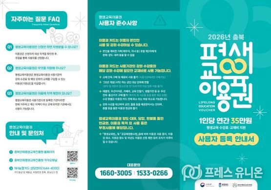 프레스유니온 김성길 기자 | 충북도가 도민의 평생학습 참여 확대와 사업 실효성 강화를 위해 충북 평생교육 이용권 상반기 모니터링을 4월 28일부터 5월 11일까지 실시한다.