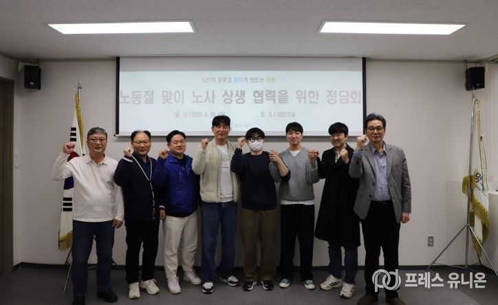 프레스유니온 김성길 기자 | 광명도시공사는 노동절을 맞아 공사 내 3개 복수노조(전국민주연합노동조합, 광명도시공사노동조합, 전국노동평등노동조합) 위원장 및 관계자들과 함께 노사 화합을 위한 정담회를 개최했다고 밝혔다.