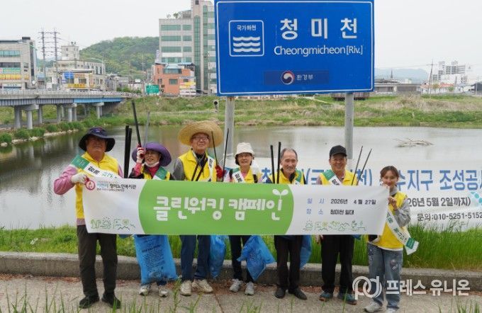 프레스유니온 김성길 기자 | 이천시는 이천시 청미노인복지관(관장 최대열)의 선배시민 자원봉사단 ‘그린이음’이 지난 4월 27일 청미천 일대에서 클린워킹, 일명 ‘줍깅’ 캠페인을 진행했다고 밝혔다.