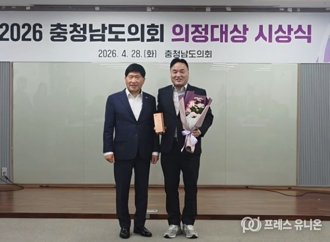 프레스유니온 강찬희 기자 | 충남도의회 박정수 의원(천안9‧국민의힘)이 충남 산업 디지털 전환을 제도적으로 뒷받침한 입법 성과를 인정받아 28일 열린 ‘2026 충청남도의회 의정대상 시상식’에서 입법활동부문 의정대상을 수상했다.