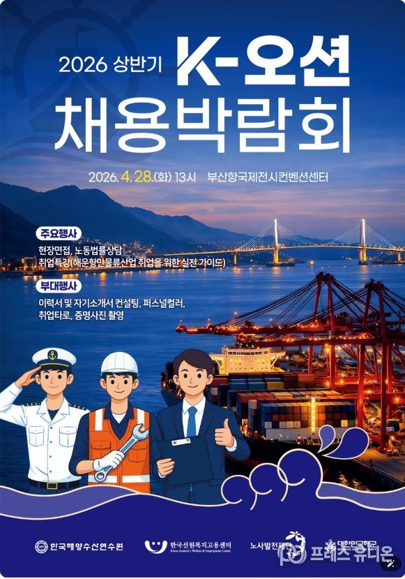 프레스유니온 강찬희 기자 | 노사발전재단(사무총장 박종필)은 4월 28일 부산항국제전시컨벤션센터 5층 이벤트홀에서 해운·항만물류 산업 공동채용박람회인'2026년 상반기 K-오션 채용박람회'를 개최했다.